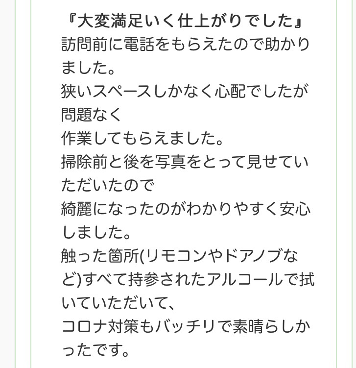 自分の家やそれ以上の丁寧さで清掃を行うことをモットーにしており、お客様に快適に過ごしていただける空間をご提供致します。